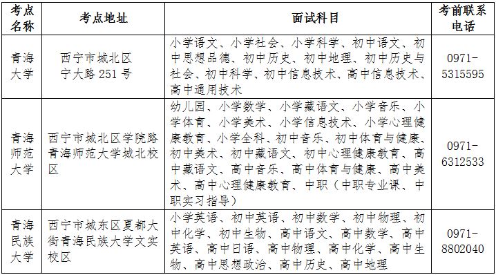 附件:青海省2020年下半年中小学教师资格考试面试考点信息